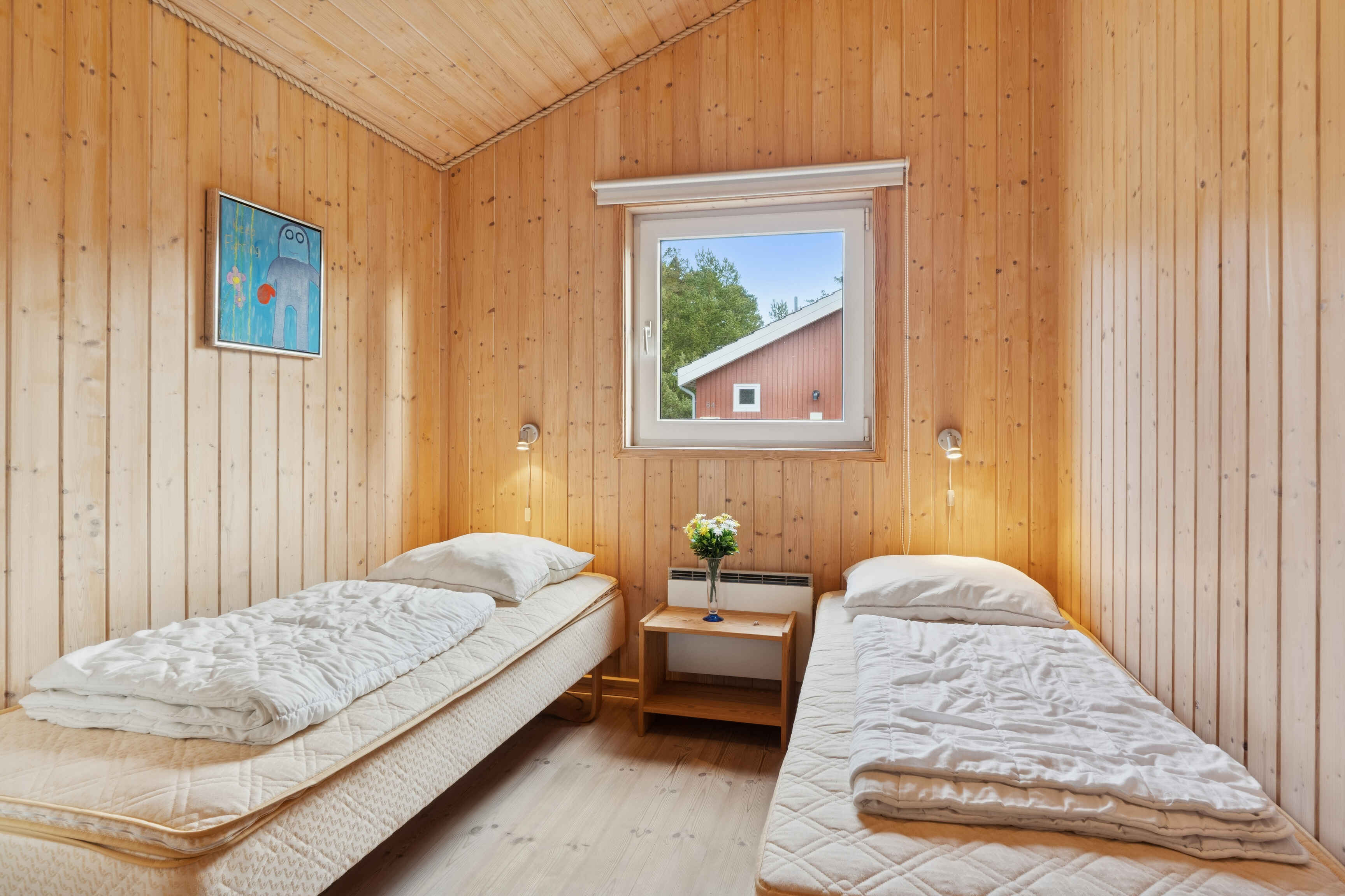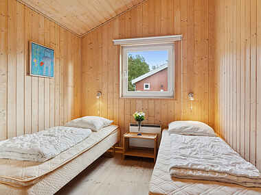 Huset rummer tre soveværelser med i alt seks faste sovepladser. Dertil kommer en hems med to madrasser, som giver ekstra plads til børn eller afslapning. Badeværelset er funktionelt og placeret centralt i huset.