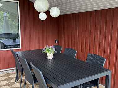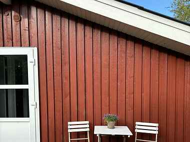 Udenfor byder sommerhuset på en skøn terrasse, hvor man kan nyde morgenkaffen eller grille om aftenen. Haven omkring huset er ideel til børneleg og afslapning i solen. Den nærliggende strand er perfekt til bade- og vandaktiviteter, og området byder på gode muligheder for vandreture, cykelture og naturoplevelser.