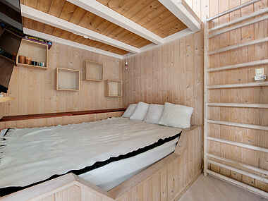 Der er 3 soveværelser, hvoraf to er indrettede med dobbeltsenge. Det tredje soveværelse har en køjeseng med to sovepladser. Derudover er der en alkove med to sovepladser.