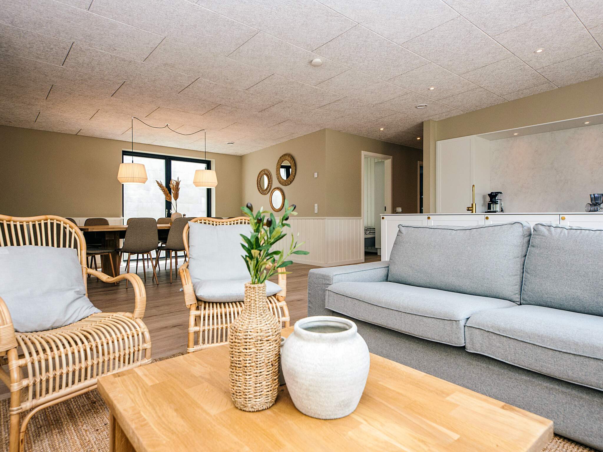 Dette rummelige sommerhus i Ebeltoft er ideelt til større familier eller flere generationer, der ønsker en afslappende ferie i naturskønne omgivelser tæt på strand og by. Huset har plads til op til 16 personer og byder på funktionelle løsninger, der gør opholdet nemt og komfortabelt. Det lyse opholdsrum er samlet omkring køkken og spiseplads og danner rammen om fælles måltider og hyggelige stunder. Aktivitetsrummet med billard og bordtennis giver underholdning for både børn og voksne, mens wellnessafdelingen med spabad, sauna og udendørs vildmarksbad indbyder til afslapning året rundt. Udendørs kan I nyde terrassen med grill og havemøbler samt udsigten over den skrånende grund. Et oplagt valg til ferie på Djursland.