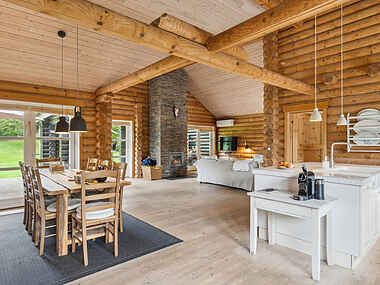 Velkommen til et skønt og stemningsfuldt bjælkehus, kun 250 meter fra den dejlige badestrand ved Råbylille. Huset byder på en stor og hyggelig stue med udgang til en delvist overdækket terrasse med udepejs – ideel til afslappede sommeraftener under åben himmel. Stuen er smagfuldt indrettet med moderne møbler som spreder hygge. Brændeovnen skaber den helt rigtige stemning i de kolde måneder. Med loft til kip og synlige bjælker er atmosfæren i huset helt i top året rundt.