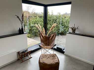 Fra stuen kan I beundre den fortryllende udsigt over den store naturgrund.