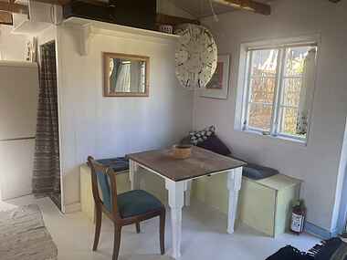 Sommerhuset byder plads til 5 personer fordelt på 2 værelser med 1 dobbeltseng, 1 enkeltseng samt 1 køjesenge. Huset er hyggeligt indrettet med fine træbjælker i loftet, hvidmalede træpaneler, komfortable møbler og masser af sjæl og sommerhushygge. Husets centrale rum består af køkken med bl.a. køleskab, ovn, kogeplader, elkedel og opvaskemaskine samt et dejligt opholdsafdeling med spisebord, sofaområde og Tv. Her er der plads til hygge og masser af gode familiestunder.