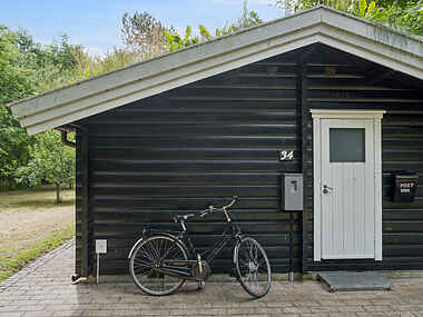 Dette sommerhus er et charmerende sort bjælketræhus med hvide vinduer, beliggende på en rolig grund med direkte udsigt til naturskov. Huset er 69 m² og indrettet med omtanke, så du kan nyde ferien i afslappede og hjemlige rammer – året rundt.