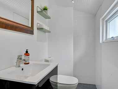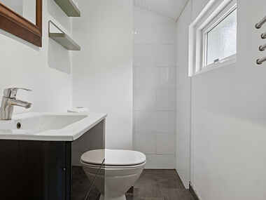 Et dejligt isoleret sommerhus, moderne og hyggeligt indrettet. Huset ligger tilbagetrukket på privat grund i Dronningmølle med kort afstand til naturskønne områder, den gode børnevenlige sandstrand, café, restauranter og dagligvareindkøb. Beliggenheden er central for udflugter på hele Nordkysten, til København og i Nordsjælland. Tæt på huset findes et åbent fællesareal med mulighed for boldspil og leg. Huset er indrettet med et stort fællesrum med køkken i åben forbindelse til stue og spiseplads. Det store rum har loft til kip og tre dobbeltdøre med direkte udgang til den store træterrasse.