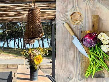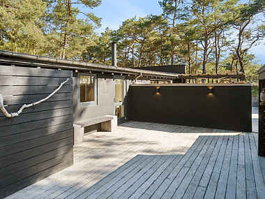 Sommerhuset er perfekt placeret tæt på stranden, kun 50 meter fra vandet. Her kan I nyde de rolige omgivelser og lytte til bølgerne, mens I slapper af på terrassen eller udforsker de nærliggende stier.