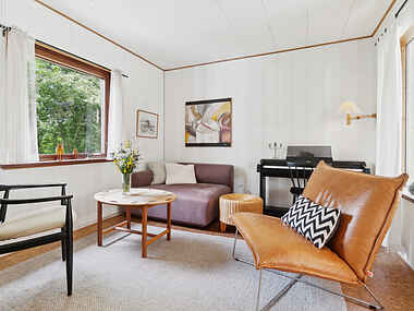 Sommerhuset har en dejlig udestue fra 2017, der inviterer til afslappende stunder året rundt. Den nyetablerede udebruser og shelter i haven skaber unikke muligheder for udendørs hygge og komfort.