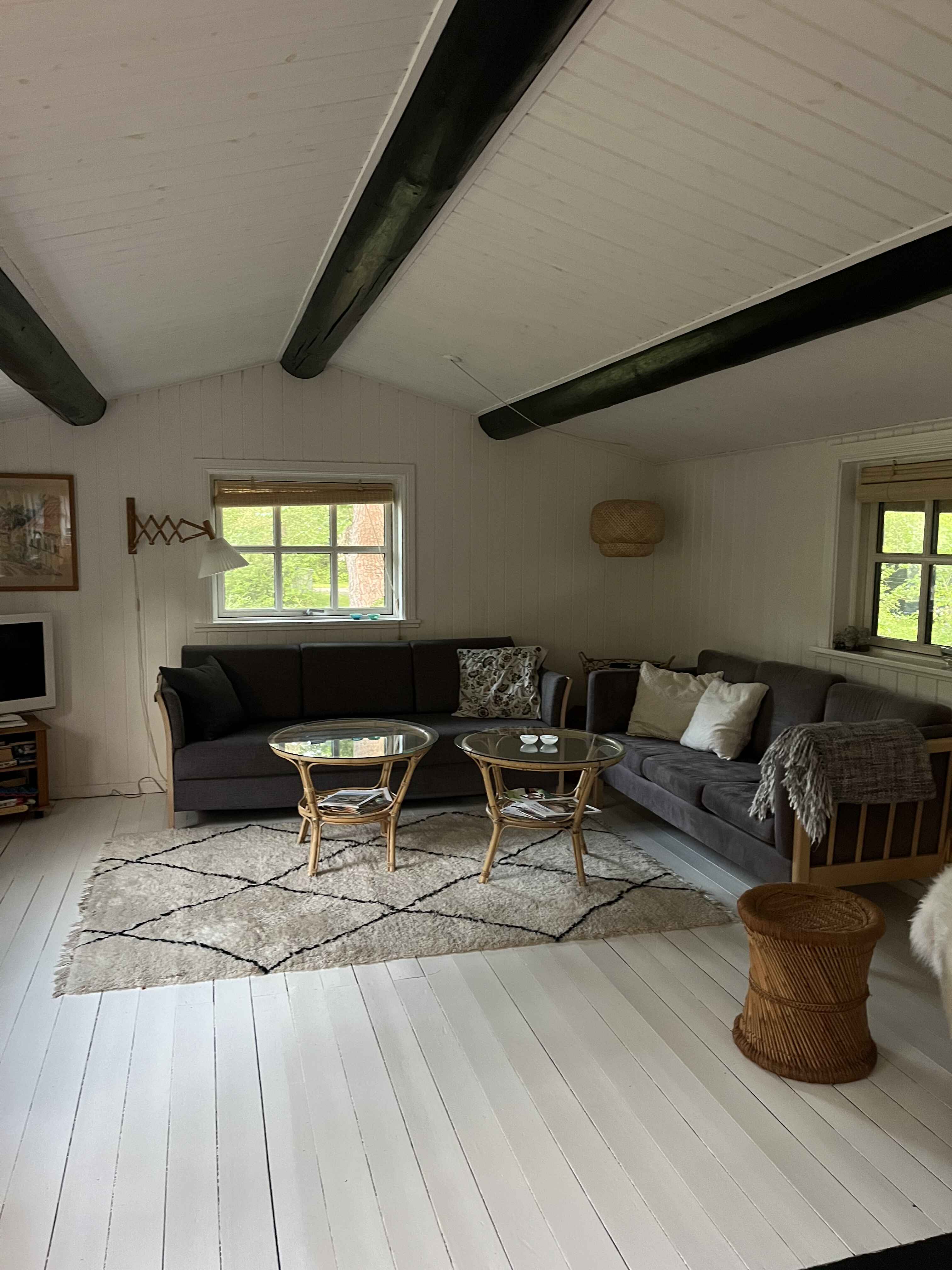Det skal nævnes, at huset nu er sortmalet ligesom gulvene er hvidmalet på nær entreen.