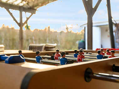Huset har overdækket terrasse med varmelampe i en lille atrium have, hvor man er helt ugeneret. Selve grunden er 1200 kvm, så der er en stor have rundt om huset, hvor der er en stor trampolin og masser af plads til leg. I skuret kan I finde forskellige legeting og på terrassen står et bordfodboldspil. Der er også bålfad til aftenhyggen.