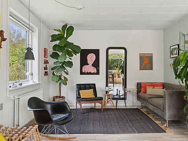 Boligen er nyrenoveret i en meget kreativ og personlig stil. Ligger omkranset af stilhed væk fra bilstøj og os. Lyse rum med adgang til 2 terasser og fredfyldt privat have. Boligen er røgfri og der er ingen dyr i huset. Det er et oplagt sted at slappe af, meditere, skrive, læse og koble af fra stress, holde ferie i en lille by ved hav og 2 fjorde. Der anvendes kun økologiske rengøringsmidler, der er ikke TV og spil.