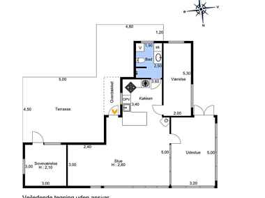 Dette hyggelige sommerhus er perfekt til en afslappende ferie. Huset byder på en åben planløsning med køkken, spiseplads og komfortabelt sofaarrangement.