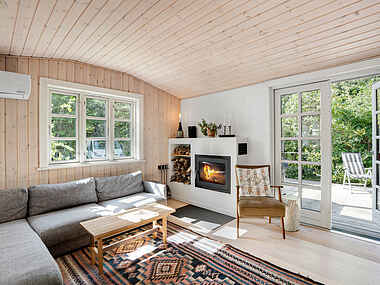 Sommerhusliv er også terrasseliv. Det får du her i overmål med træterrasse omkring hele huset, så der altid kan findes en solplet, og er solen for kraftig kan markisen rulles ud. Derudover er der et skønt og rustikt orangie mod syd, hvor aftener og kølige dage kan nydes med udsigt til naturen.