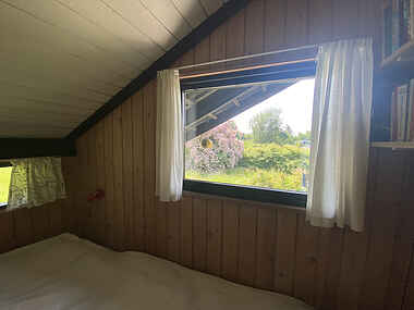 Inde i sommerhuset mødes du af et åbent køkken alrum med loft til kip, hvilket skaber en rummelig og luftig atmosfære. Her er der plads til hele familien at samles og nyde måltider og hyggelige stunder sammen. Fra alrummet er der adgang til to gode soveværelser, hver med to sovepladser, hvilket sikrer en god nats søvn for alle. Derudover er der også mulighed for ekstra sovepladser i stuen, hvor du kan ligge og betragte aftenhimlen gennem tagvinduet.