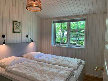 Huset er fra august 2021 og indrettet i lys og let sommerhusstil. Huset indeholder stor, lys stue med loft til kip, åbent køkken og skøn udsigt over vandet. 2 soveværelser med kontinentalsenge (dobbeltsenge 180×200) og 1 soveværelse med 2 enkeltsenge (80×200). Badeværelse med gulvvarme, brusekabine og vaskemaskine.