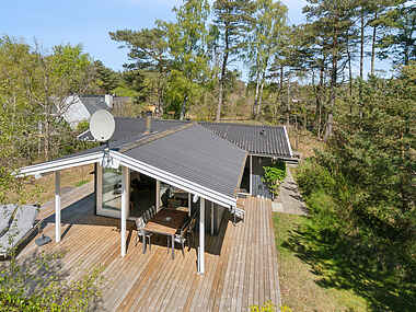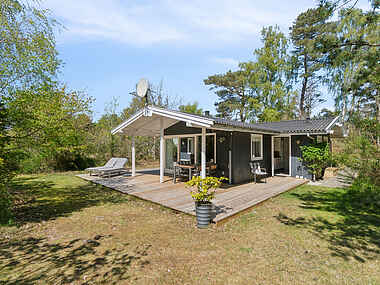 Dette hyggelige træsommerhus tilbyder en ideel ramme for afslappende feriedage nær strand og natur. Her er plads til seks personer, fordelt på tre komfortable soveværelser.
