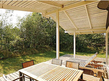 Dette hyggelige træsommerhus tilbyder en ideel ramme for afslappende feriedage nær strand og natur. Her er plads til seks personer, fordelt på tre komfortable soveværelser.