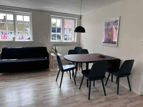 Indenfor finder du et lyst opholdsrum, der kombinerer køkken, spiseplads og sofaområde. Der er to separate soveværelser og yderligere sovepladser, så lejligheden passer godt til både par og familier. Indretningen er enkel og funktionel.