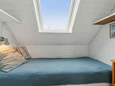 Sommerhuset er nyrenoveret og moderne indrettet med alle bekvemmeligheder, herunder internet og opvaskemaskine, som gør ferien endnu mere afslappende og komfortabel. Huset har to soveværelser med dobbeltsenge på første-etagen (barneseng i det ene), et værelse med en enkeltseng og en stor hyggelig stue med fladskærms TV (Chromecast og HDMI), hvor alle kan være sidde sammen. I stue-etagen finder i et stort køkken med alt, der hører til samt hyggelige siddepladser og udgang til en morgenmadsterrasse. Rundt om hjørnet fra køkkenet er spisestuen beliggende, hvor alle kan nyde en middag foran pejsen. Fra spisestuen er der udgang til en stor terrasse, hvor man kan grille og nyde gode sommeraftener. I stue-etagen finder I også et større badeværelse med gulvvarme og det sidste værelse der har en dobbeltseng (120cm) med en køje ovenover, hvor en 8. person/barn vil kunne sove.