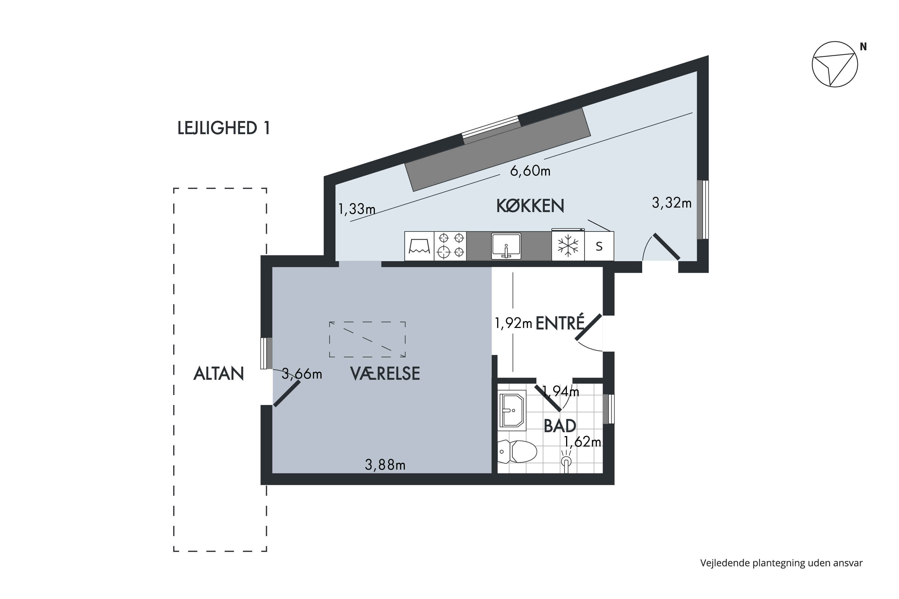 • 1 Soveværelser