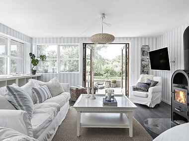 Skønt sommerhus i bedste beachhouse stil dejligt kombineret med badehotel vibes.