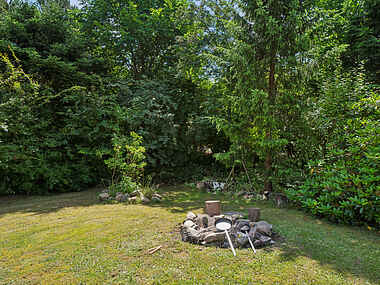 Udendørs fortsætter den lange liste af gode løsninger, for her venter en terrasse med grill samt en have med spil, bålplads og en hængekøje, hvor man kan snuppe en siesta i løbet af eftermiddagen.