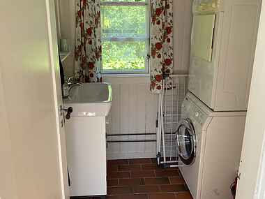 Indenfor sørger brændeovnen og varmepumpen for komfort året rundt. Gæstetoilettet giver ekstra bekvemmelighed, og internet gør det nemt at være forbundet, hvis det ønskes.