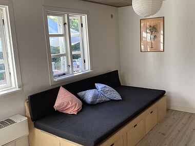 Der er to soveværelser med dobbeltsenge, hvor den ene dobbeltseng kan skubbes fra hinanden til at blive to enkeltsenge. I de to andre værelser er der hver en køjeseng, den ene ca 170×75 cm stor og den anden er 200 x 90 cm stor. Derudover findes en sovesofa og en daybed i huset.