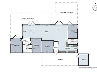 Det indbydende køkken er det perfekte sted at udfolde dine madlavningsfærdigheder sammen med familien. Den rummelige stue fungerer som en fantastisk udsigtspost, hvor terrassedørene åbner op og bringer naturen indenfor. Her forenes indendørs og udendørs rum, hvilket gør det muligt at nyde de betagende solnedgange både inde og ude.