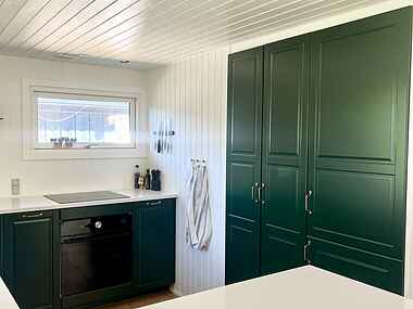 Sommerhuset er fuldt udstyret og klart til at skabe rammerne om en skøn ferie. Det nyrenoverede køkken har alt, hvad I behøver, inklusive opvaskemaskine. Der er aircondition for varme sommerdage og en brændeovn for hyggelige aftener. Stuen er indrettet med en stor sofa og fjernsyn med Apple TV samt trådløst internet, så I kan slappe af og nyde jeres yndlingsprogrammer.
