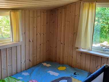 Til ferieboligen hører et stort, åbent terrasseareal med udsigt til mark/skov, som giver mulighed for at nyde solen og måltiderne udendørs. Desuden er der en god overdækket terrasse.