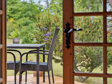Udendørs venter en stor, grøn have med mange muligheder for både aktivitet og afslapning. Den overdækkede terrasse er perfekt til morgenkaffe, aftensmad under åben himmel eller en stille stund med en god bog. Rundt omkring i haven finder I små hyggelige kroge og et bålsted, der indbyder til snobrød, skumfiduser og lange sommeraftener under stjernerne.