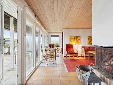 Huset ligger på en stor klitgrund, kun 250 meter fra havet, perfekt til afslappende gåture og strandoplevelser. I får også glæde af en åben terrasse, ideel til afslapning udendørs.