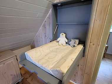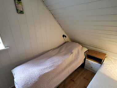 Huset har 2 værelser, hver med 2 senge, derudover er der én juniorseng i det ene værelse og en weekend seng til 0-3 år. Mellemgang med 1 seng.