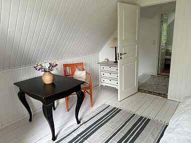 Overetagen har tre hyggelige soveværelser samt en svalegang med havkig. Området byder på fine vandreture, der veksler mellem strand, vådområder, skov og fantastiske udsigter over istidslandskabet.