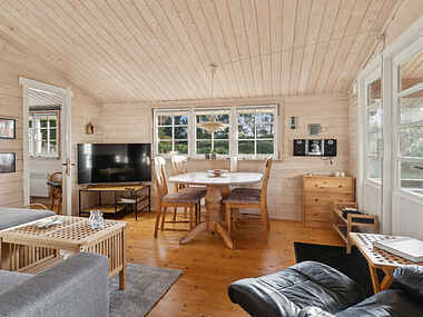 Dette hyggelige sommerhus byder på en afslappende base med plads til hele familien. Huset er ideelt til en ferie med både børn og voksne, og det rolige område sikrer afslapning og hygge.