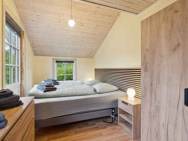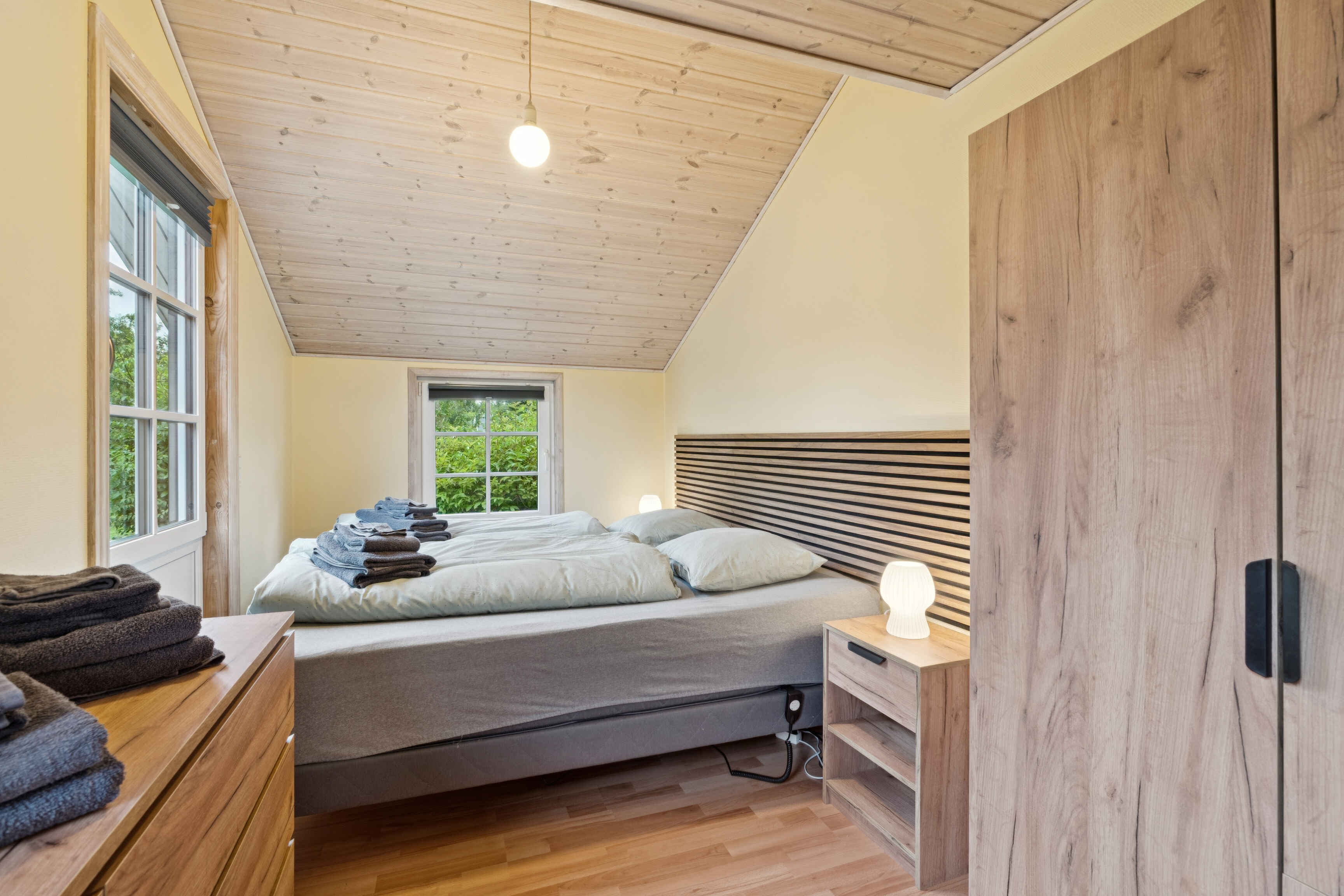 Tæt på Ringkøbing Fjord ligger dette dejlige træhus, som byder jer velkommen til en skøn ferie. Interiøret er lyst med mange vinduer og smukke detaljer af træ, som skaber en hyggelig stemning indenfor. Værelserne gør et godt indtryk og indbyder til mange afslappende eller selskabelige timer. Tilbring hyggelige aftener med brætspil og tænd op i brændeovnen efter en kølig dag med en gåtur i den friske vind.