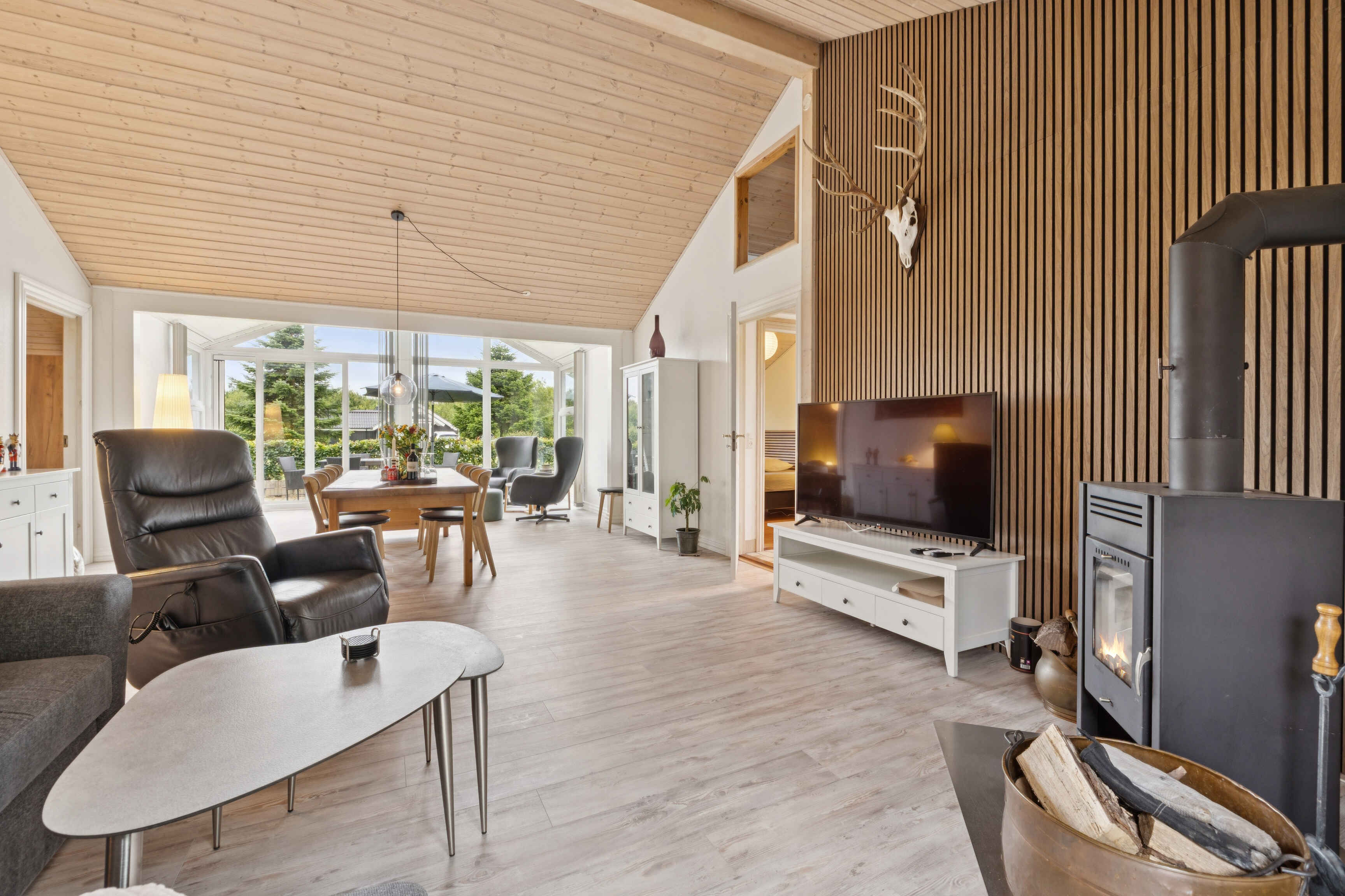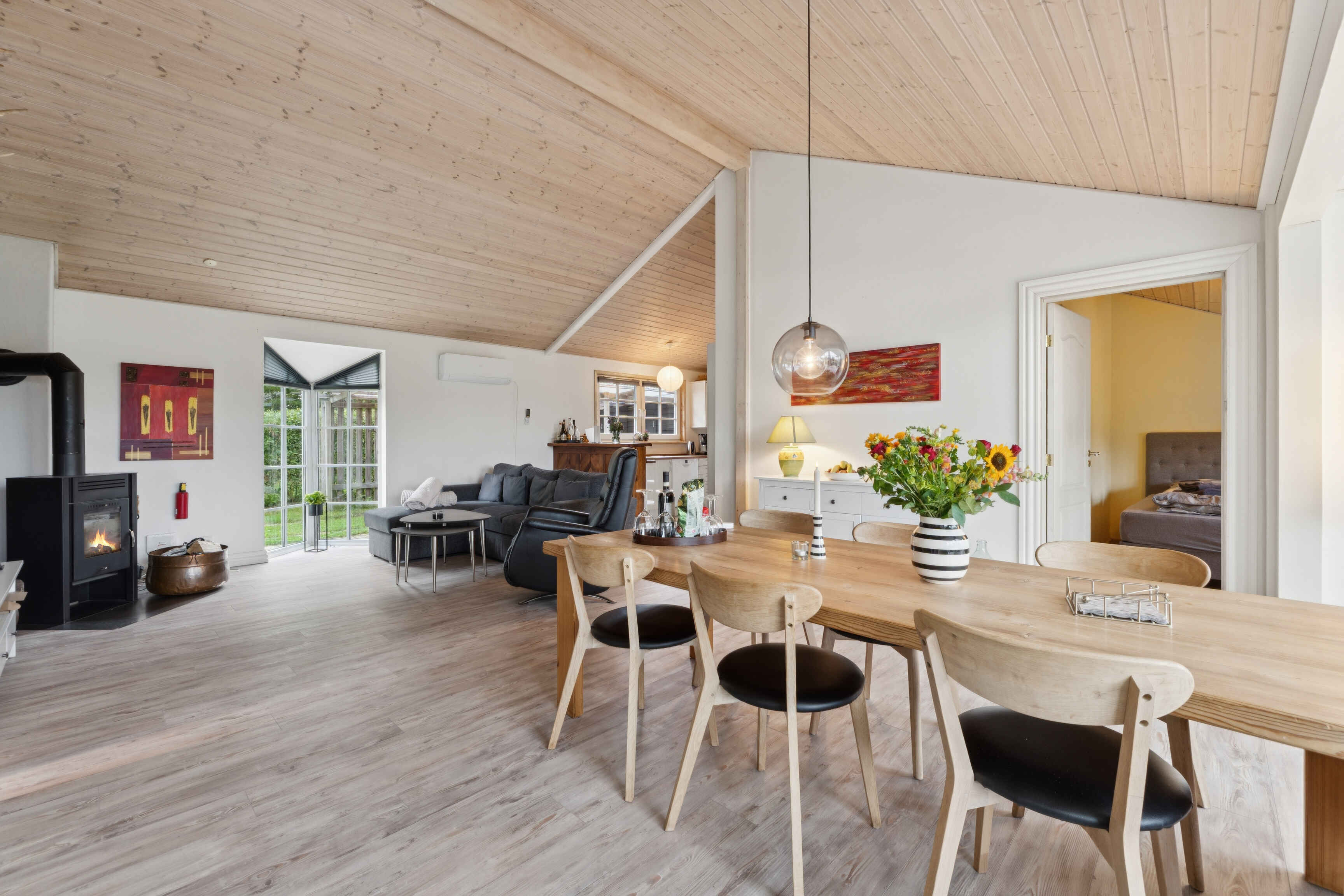 Tæt på Ringkøbing Fjord ligger dette dejlige træhus, som byder jer velkommen til en skøn ferie. Interiøret er lyst med mange vinduer og smukke detaljer af træ, som skaber en hyggelig stemning indenfor. Værelserne gør et godt indtryk og indbyder til mange afslappende eller selskabelige timer. Tilbring hyggelige aftener med brætspil og tænd op i brændeovnen efter en kølig dag med en gåtur i den friske vind.