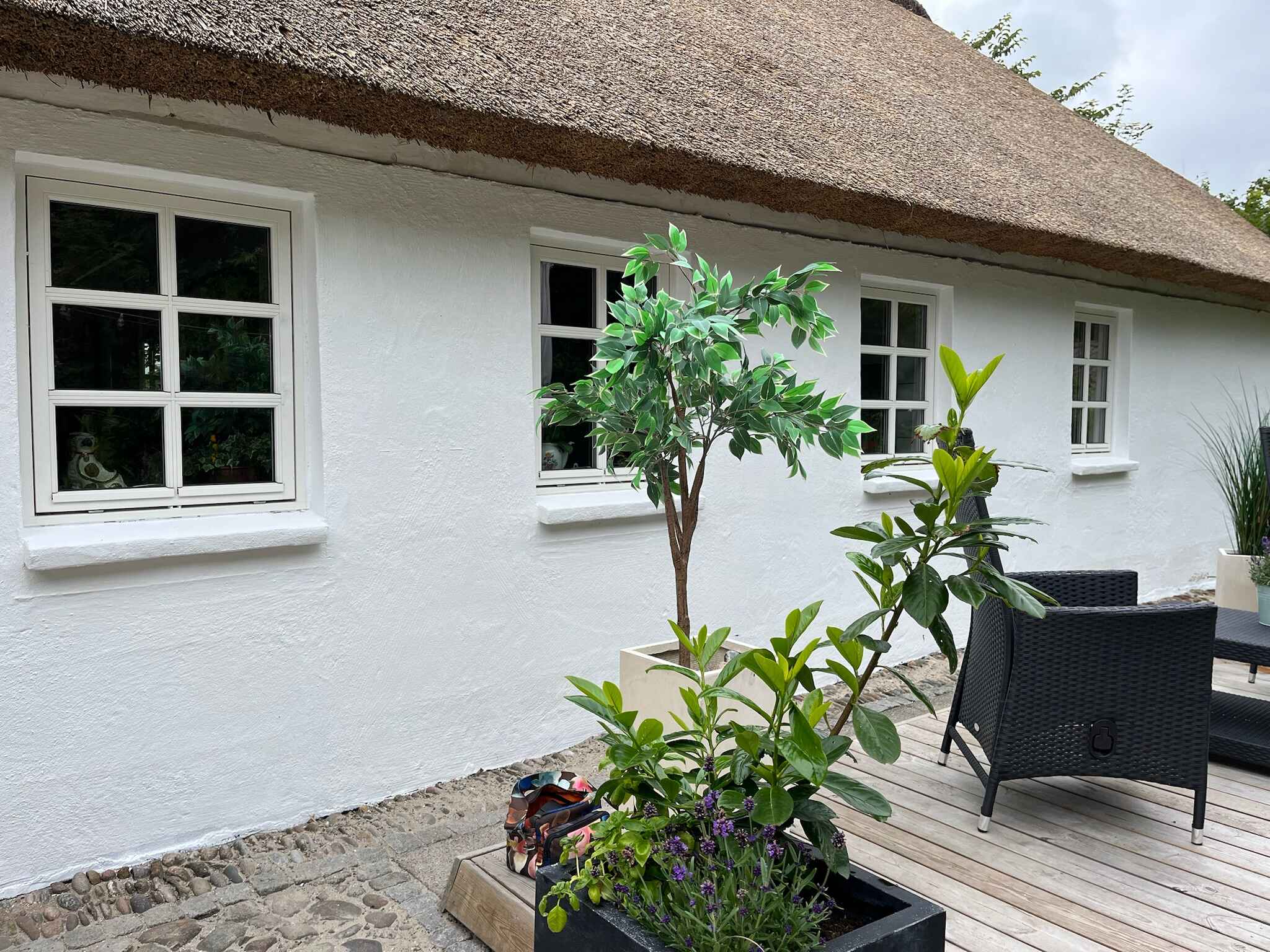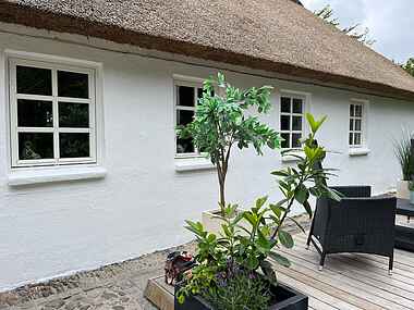 Drømmer I om en ferie, hvor der er højt til himlen, frisk havluft og tid til hinanden – så er dette stråtækte sommerhus lige noget for jer. Her, kun en kort cykeltur fra Vesterhavet og midt i det vestjyske landskab, ligger huset i fredelige, grønne omgivelser – som skabt til afslapning og nærvær.