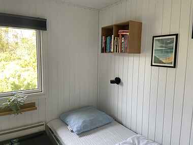 Huset har tre soveværelser og fem sovepladser, ideelt til en familieferie. . De store vinduespartier giver et fantastisk lysindfald og en vidunderlig udsigt over grunden.