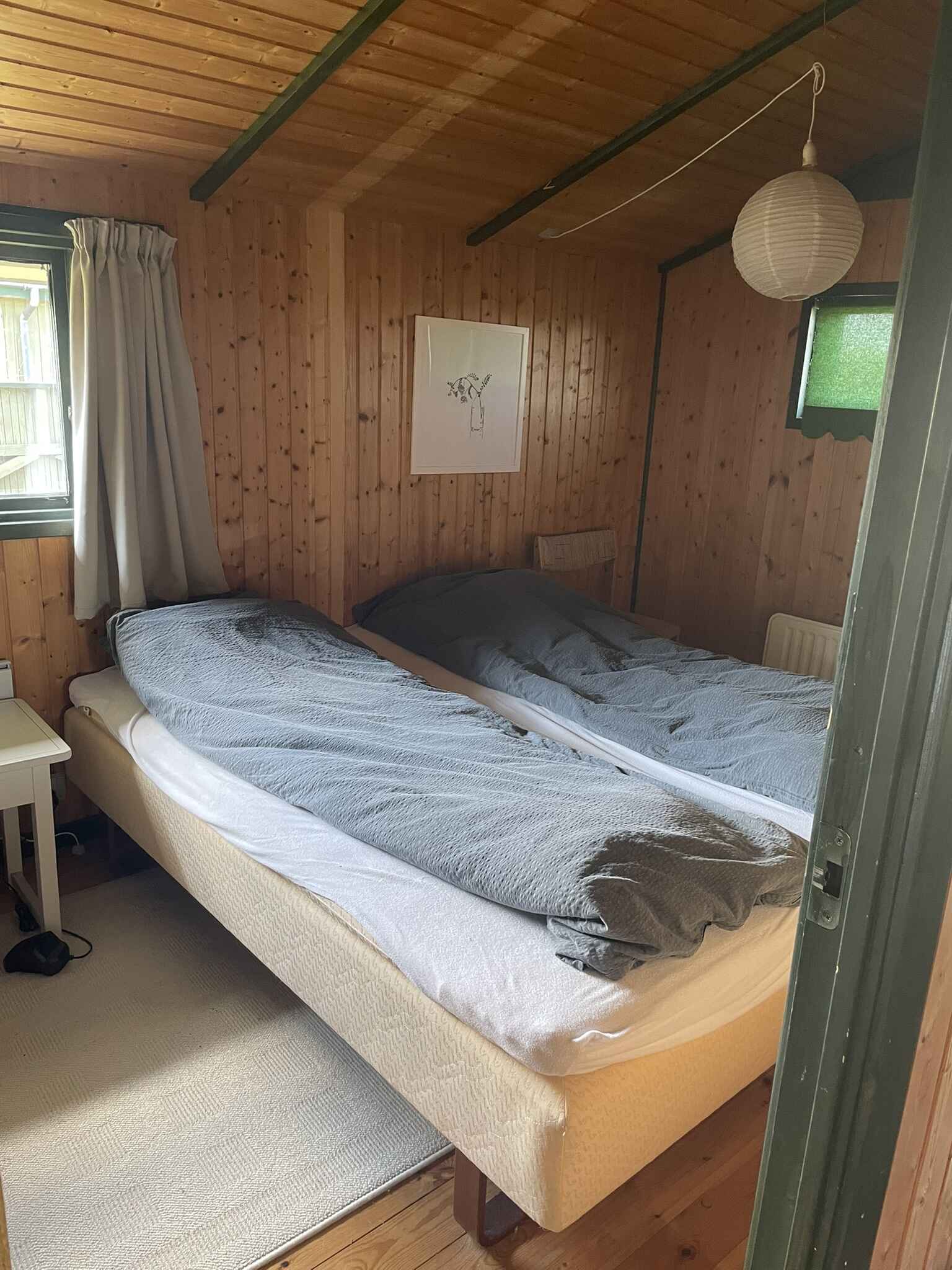 Sommerhuset er et velholdt retro 1970’er hus, der altid har været i familiens eje. Badeværelset er renoveret for nylig, ligesom der er nye hårde hvidevarer og ny varmepumpe og brændeovn. To værelser er slået sammen til et stort soveværelse og herudover er der to pæne værelser. Der er dobbeltsenge i to af værelserne og to brede enkeltsenge i det tredje værelse. Møblerne i huset er lyse og enkle.