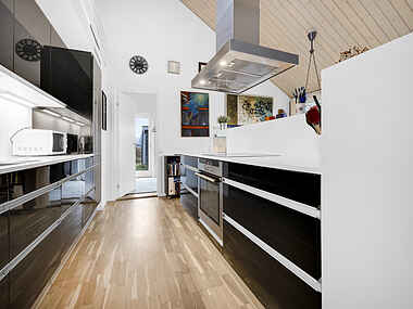 Udenfor venter en rummelig træterrasse, komplet med komfortable havemøbler og en grill. Forestil dig hyggelige sommeraftener her, mens du nyder selskabet og den friske luft.