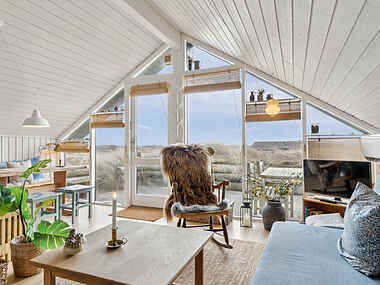 Fra køkken alrummet har du den smukkeste udsigt over klitheden, tranumenge og længere væk ser du Fosdalen tårne sig op.