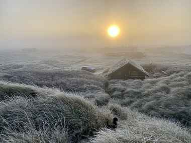 I yderste klitrække ved vesterhavet, ligger vores skønne lille perle omgivet af vild og rustik natur, som på alle årstider giver ro langt ind i sjælen.