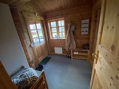 Opholdsområdet er indrettet med et lyst køkken og en hyggelig stue. Efter en lang dag kan I slappe af i husets sauna eller spabad og nyde roen.
