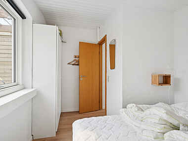 Huset har to soveværelser og seks sovepladser, hvilket gør det velegnet til både familier og små grupper. Den åbne stue og køkkenalrum skaber en rummelig atmosfære med masser af naturligt lys.