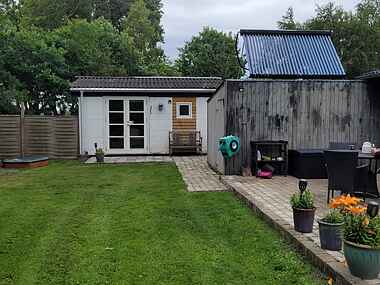 Oplev ren idyl i dette skønne, moderne sommerhus i det nordjyske paradis, Hals. Med en imponerende størrelse på 122 m2, kan du forvente luksus og komfort, mens den indbydende, ugenerede have skaber en oase af ro. En perfekt kombination af nærhed til bylivet og det forfriskende hav 🌅