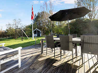 Huset har to skønne terrasser, hvor du kan nyde morgenkaffen eller grillaftener med familie og venner. Indenfor venter hyggen med en brændeovn, der spreder varme og atmosfære. Her er plads til at slappe af og boltre sig med spil på græsset.