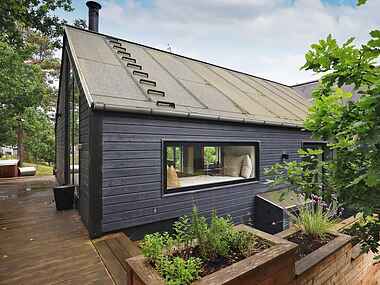 Udenfor byder haven på små, hyggelige kroge, hvor morgensolen kan nydes med en kop kaffe. Den store træterrasse med læhegn indbyder til lange sommerdage under åben himmel. Her kan I forkæle jer selv med et vildmarksbad, skylle sandet af under den udendørs bruser eller samle familien omkring bålet, når aftenen falder på.