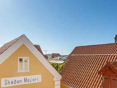 Intet andet sted i Skagen finder du en feriebolig med en så central placering som denne. Beliggende midt i hjertet af byen, har du lige uden for døren adgang til Skagens charmerende handels- og restaurationsliv. Her kan du nyde alt fra hyggelige caféer til lækre gourmetrestauranter og spændende butikker. Når du har brug for en pause fra byens liv og leben, kan du trække dig tilbage til din egen private oase – en ugeneret solterrasse, hvor du kan slappe af i ro og mag.