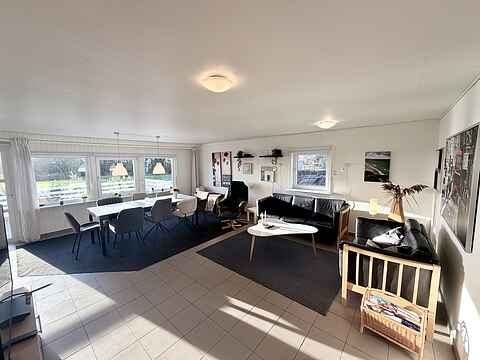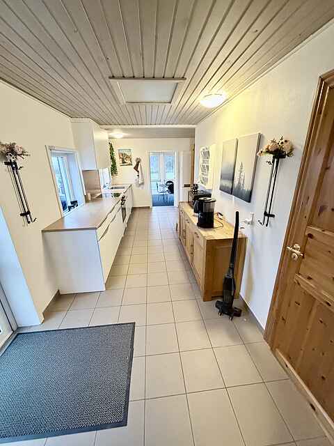 Dette indbydende hus har en perfekt beliggenhed, hvis I går efter en ferie med masser af aktiviteter i naturen. Boligen er lys og moderne med kig til rå murstens- og trævægge. Glæd jer til at nyde dagens måltider og hyggelige brætspilsaftener rundt om det lange spisebord, hvor I har en dejlig udsigt til fjorden. Læn jer tilbage i stuens bløde møbler og snak om, hvad I skal ud at opleve i morgen, mens ilden knitrer stemningsfuldt i brændeovnen.